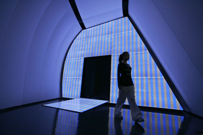 Выставка в Гонконге была посвящена знаменитой стеганой сумочке на ремешке-цепочке, придуманной Коко Шанель. Это передвижной павильон в виде неправильного белого эллипса, который лучше всего воспринимается  изнутри, когда зритель блуждает по его переходам, тупикам и пазухам, напоминающим внутренность ракушки.