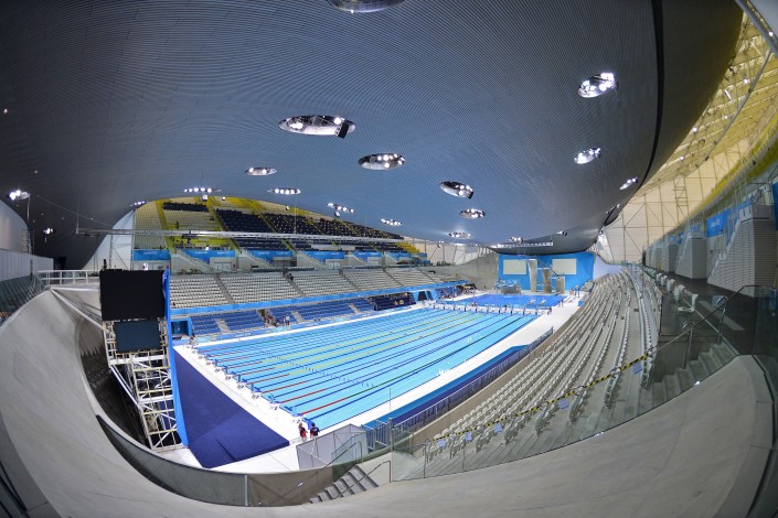 Центр водных видов спорта, Лондон (открыт в 2011 году). Дизайн-проект этого здания был разработан в 2004 году и получил Притцкеровскую премию еще до того, как Лондон выиграл право на проведение летних Олимпийских игр-2012.