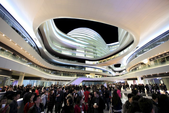 Многофункциональный комплекс Galaxy SOHO от Захи Хадид в Пекине. Современный комплекс, впечатляющий формой и размерами, состоит из четырех объединенных объемов, которые не имеют углов и резких переходов, нарушающих плавность и целостность восприятия.