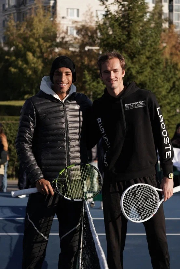 Четвертая ракетка мира, россиянин Даниил Медведев и восьмой сеяный турнира ATP 500 Astana Open канадец Феликс Оже-Альяссим провели выставочный матч перед главной достопримечательностью столицы - Байтереком, сообщает пресс-служба ФТК.