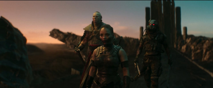 Кстати, для съемок локаций Внешнего мира и некоторых боевых сцен был выбран заброшенный карьер Блэк-Хилл в одноименном городке, что в 112 километрах от Аделаиды. Местные скалы Блэк-Хилл служили источником для двух коммерческих гранитных карьеров. Здесь они добывали материалы, которые использовались для строительства крупных зданий в Австралии.