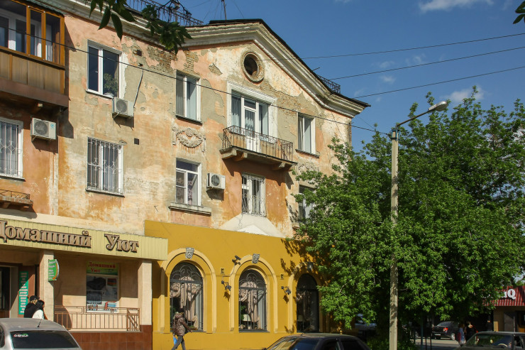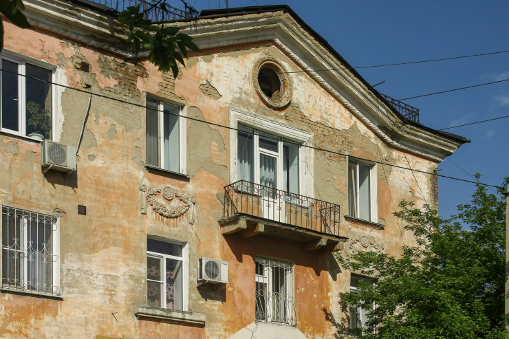 Немало здесь и "сталинских" трехэтажек с кое-где сохранившимися барельефными изображениями: знамена, ленты, серпы и молоты, дубовые гирлянды и снопы пшеницы. Конец 80-х и безвременье 90-х оставили на фасадах шрамы в виде внушительных трещин, отваливающейся штукатурки, разрушенных чердачных надстроек.