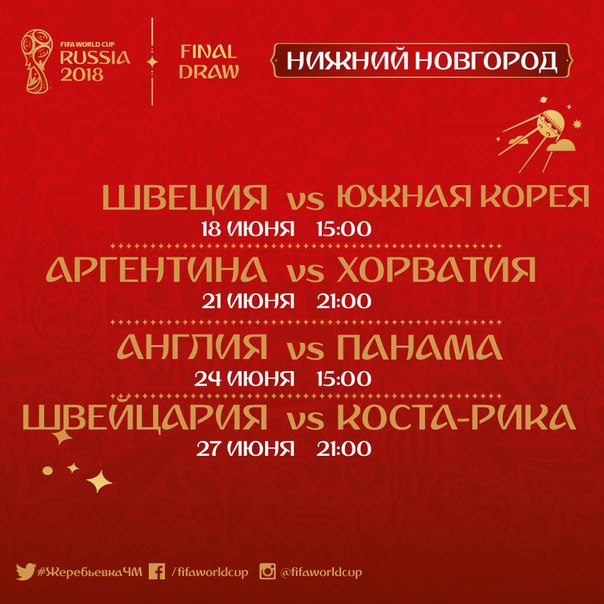 В Нижнем Новгороде пройдут четыре групповых матча чемпионата мира по футболу 2018 года, а также 1/8 и 1/4 финала.