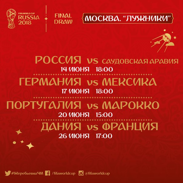 Расписание матчей чемпионата мира - 2018 на стадионе "Лужники":