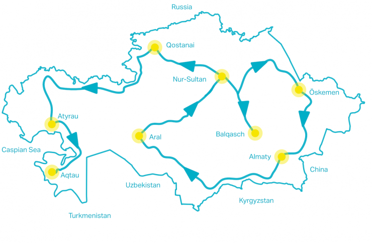 Карта путешествия Марио Хеллера по Казахстану