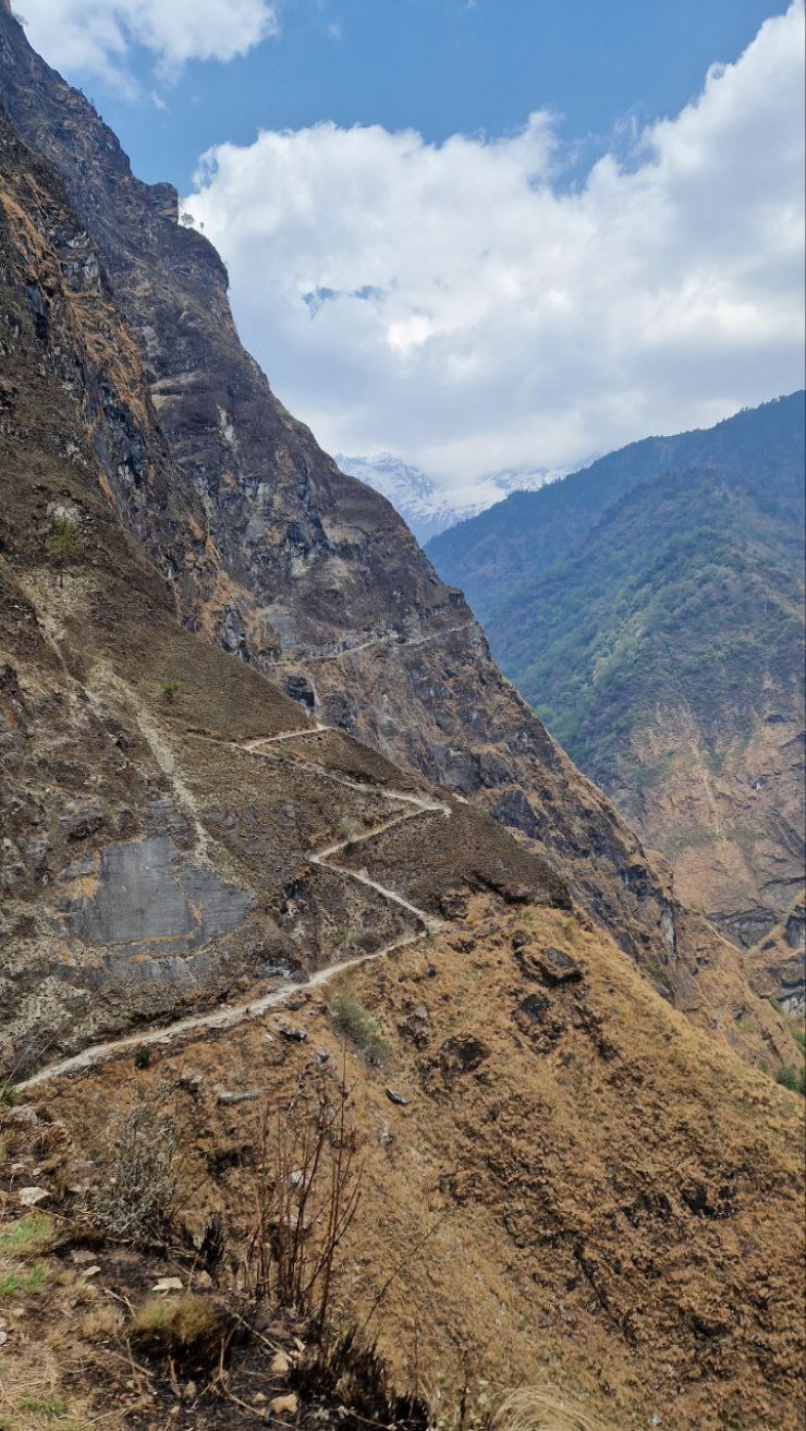 "Обычный резкий подъем в гору и тропа начинают волнообразно тянуть нас наверх. В тот день мы в основном шли по лесу, лес влажный, сочный, диковинный. Заросли бамбука, появились кусты рододендронов, часто встречаются ручьи. Особенностью для нас стали водопады: они проливаются с самого гребня по обе стороны ущелья. В лесу постоянно кто то шуршит, щебечут птицы и трещат цикады. Прошли почти 11 километров за 3 часа 15 минут. Темп держали хороший, сделали одну остановку на чай около хижины, потому что других мест для остановки не было. Встали на ночлег в лоджии Дован (2460 метров), здесь соединяются два ущелья: одно ведет к подножию Дхаулагири 4, а основное - в базовый лагерь Дхаулагири 1", - рассказал Максут Жумаев.