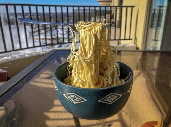 Один житель Чикаго провел эксперимент с лапшой: по его словам, она замерзла через минуту. Такой же опыт ранее ставили в Арктике.