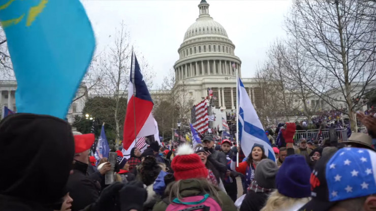 Фото с флагом Казахстана в толпе штурмующих Капитолий в США заметил журналист Ali Harb. Он опубликовал снимок в Twitter.