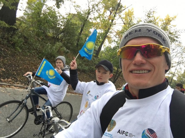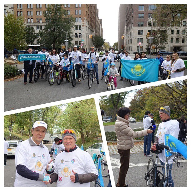 Шествие началось в самом живописном месте мегаполиса - Центральном парке. По данным телеканала, голубые флаги Казахстана были видны в разных уголках парка. Велопробег, организованный Генеральным консульством нашей страны в Нью-Йорке при содействии Казахстанско-американского Альянса, не был спортивным состязанием. В нем приняли участие неопытные велосипедисты и маленькие дети.