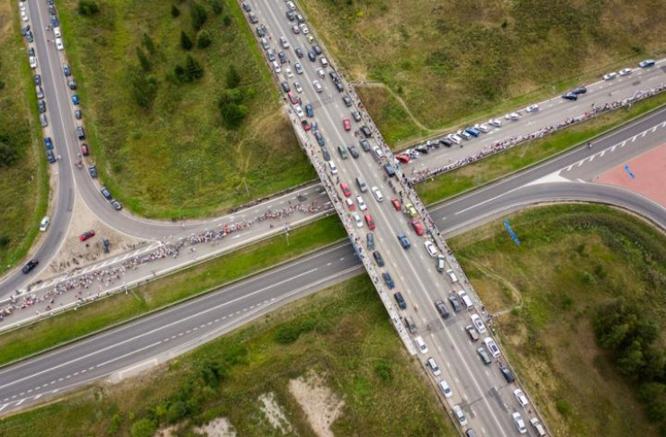 Вечером 23 августа около 50 тысяч жителей Литвы взялись за руки и образовали живую цепь от Вильнюса до населенного пункта Мядининкай на границе с Беларусью в знак поддержки протестующих в соседней стране. Прямую трансляцию с места событий вел портал DELFI, сообщает Tengrinews.kz.