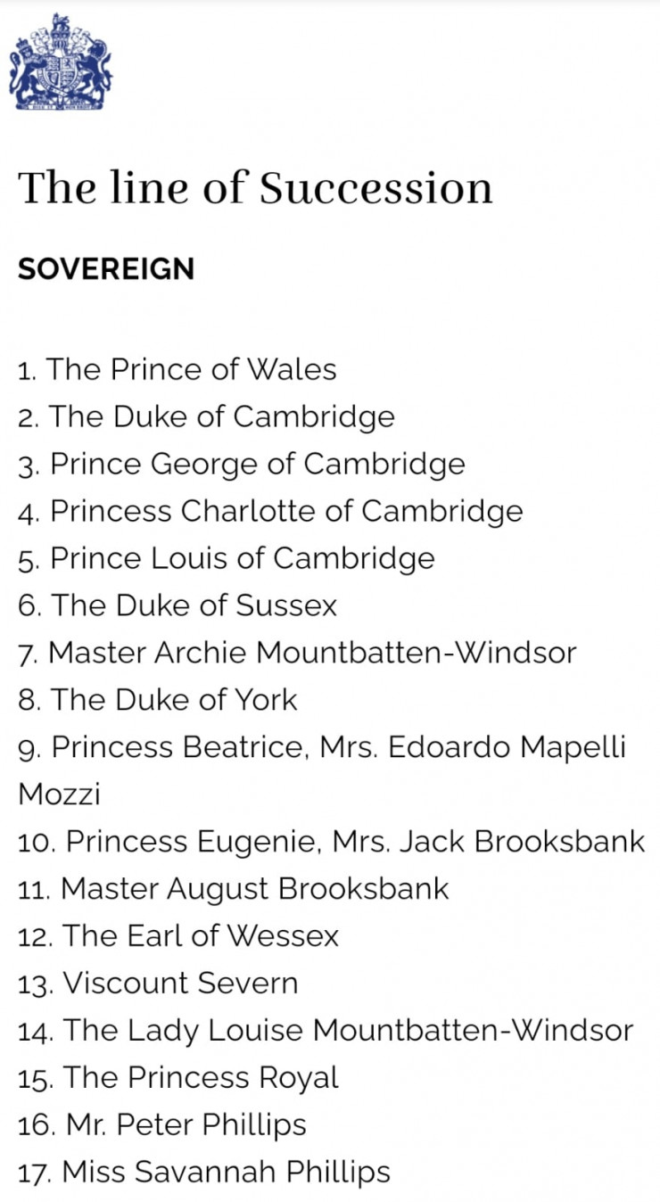 Лилибет Диана Маунтбеттен-Виндзор родилась 4 июня в США и занимает восьмую строчку в очереди на престол. Однако ее имя до сих пор не включили в официальный список престолонаследия на сайте королевской семьи.