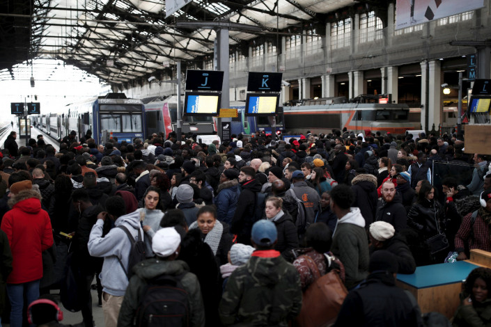 Издание Monde пишет, что 9 декабря большинство железнодорожных поездов, так же как и метро, будут ходить со сбоями.