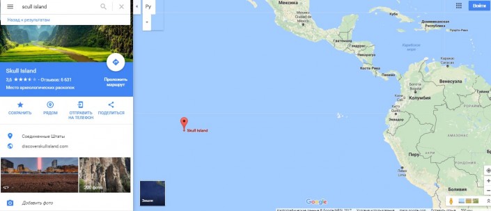 На картах сервиса Google Maps появился вымышленный остров Черепа, где живет герой легендарной серии фильмов про Кинг-Конга, сообщает L!FE.ru.