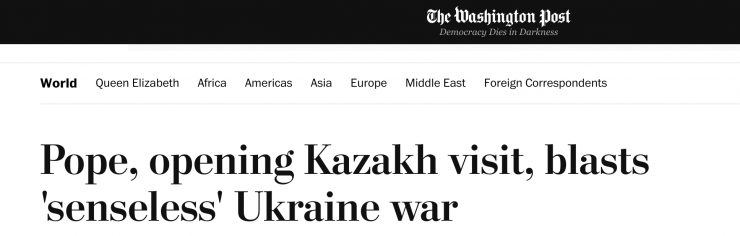 "В первый день апостольского визита в Казахстан Папа Римский Франциск призвал к миру в Украине. Он заявил, что приехал как "паломник мира, стремящийся к диалогу и единству", - отметили на телеканале.