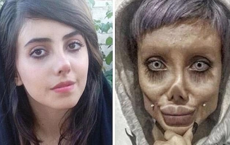 Сахар Табар прославилась после публикации в Instagram (сейчас ее страница удалена. - Прим.) фотографий, на которых она напоминала одновременно Анджелину Джоли и зомби. Позднее девушка призналась, что создала этот образ при помощи макияжа и фотошопа.