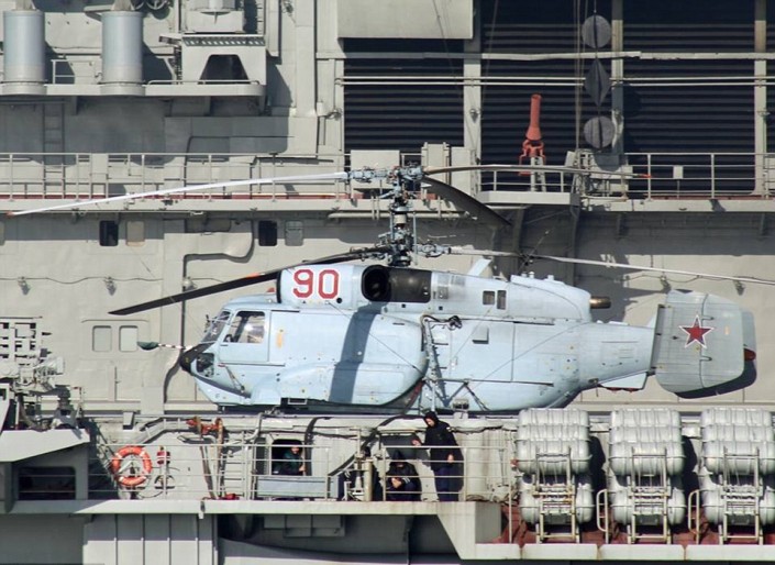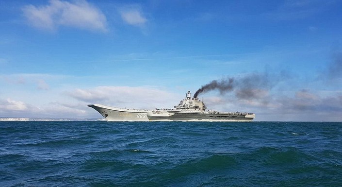 Помимо "Адмирала Кузнецова", в российскую флотилию входят атомный ракетный крейсер "Петр Великий", два больших противолодочных корабля класса "Удалой" и четыре других корабля.