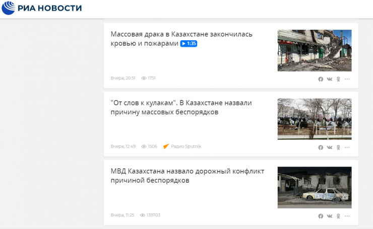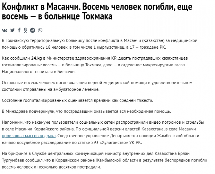 РИА Новости ақпарат порталы Қордай ауданындағы оқиғаның мән-жайын бүге-шігесіне дейін таратып отырған ресейлік порталдардың бірі. Сайт қайғылы оқиғаның неден туғанын, себебін және билік өкілдерінің әрекетін баяндаған.