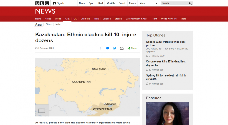 7 ақпанда Жамбыл облысы, Қордай ауданы, Масанчи ауылында тұрғындар арасында жаппай төбелес болды. Қақтығысқа 300 адам қатысқан. Металл заттарын, атыс қаруын қолданғандар Ауқатты және Бұлан батыр ауылдарында жанжал шығарған. Оқиға салдарынан 10 адам қаза тауып, 40-қа жуық үй, 20-дан аса сауда үйі қирап, көптеген көлік өртенген. Tengrinews.kz тілшісі қайғылы оқиға туралы шетелдік басылымдар қалай ақпарат таратқанына шолу жасады.