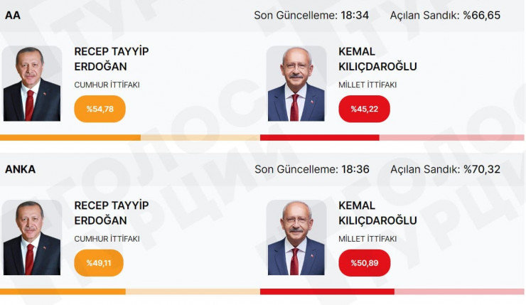 По данным же Anka, во втором туре лидирует Кылычдароглу с отрывом в почти 700 тысяч голосов (около 2 процентов).