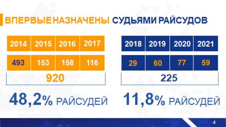 По нагрузке уже сказал. Далее для привлечения в суды сильных юристов принят закон, он заработал с начала 2022 года. Для юристов отдельных отраслей права (налоги, финансы, корпоративное право, недропользование) введен быстрый порядок отбора. Им дается возможность стать судьями облсуда, минуя райсуд.