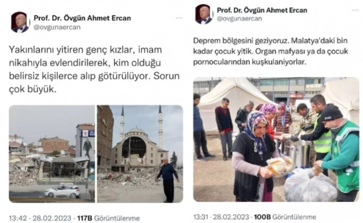Также Ахмет Эрджен опубликовал пост, в котором сообщал, что в Мальтае после землетрясения пропало около тысячи детей, которых, вероятно, мафия украла ради органов или производства детской порнографии.