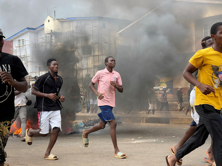 На видео в социальных сетях видны большие толпы протестующих и груды горящих шин в некоторых частях Фритауна. На других кадрах видно, как группа молодых людей бросает камни на улицу, залитую беловатым дымом.