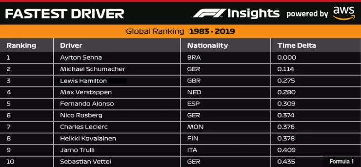 В итоге в топ-10 самых быстрых пилотов Формулы-1 начиная с 1983 года вошел бразилец Айртон Сенна, признанный быстрейшим гонщиком за всю историю. Второе место по скорости занял немец Михаэль Шумахер, а третьим стал британец Льюис Хэмилтон.